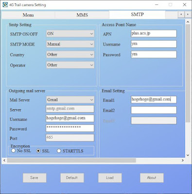 このパスワードをトレイルカメラの設定画面で入力すると、薩英された画像がメールで送信されてくるようになります。